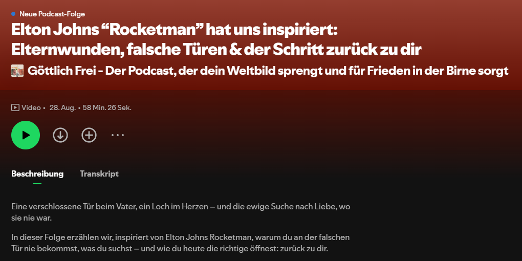 Inspiriert von Elton Johns Rocketman sprechen wir im aktuellen Podcast über Elternwunden,