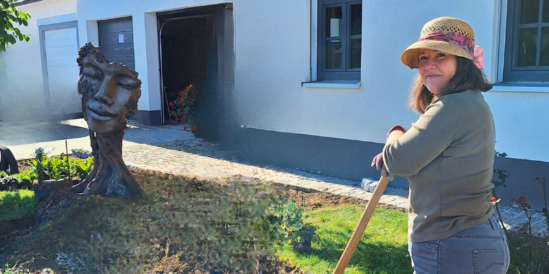Einige Monate später machte ich mich auf in ihren Ort. Und tatsächlich: Ihr Haus war umgeben von einem Rosengarten, der selbst wie ein kleines Paradies wirkte. Zwischen den Rosen standen unzählige Figuren aus Steinguss, jede von ihnen voller Seele, jede ein Ausdruck von Schönheit, Beständigkeit und Tiefe.