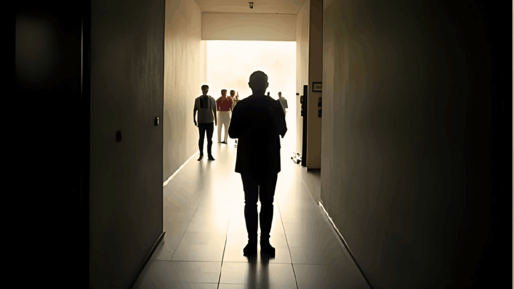 Du führst heimliche Zoom-Gespräche im Auto, als wärst du ein Schmuggler deiner eigenen Wahrheit. Zu Hause flüsterst du, weil du Angst hast vor dem Gesicht deines Partners, vor der Stimmung der Umgebung, vor den unausgesprochenen „Mach das nicht“-Regeln, die in der Luft hängen wie Staub in einem alten Klosterflur.
