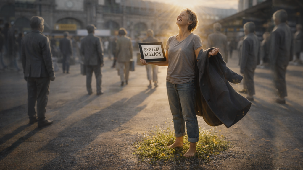 Stell dir eine Frau vor, die nach 20 Jahren ihren Job in einer Bank verliert. Das System, die Sicherheit, die Struktur – alles bricht weg. Ihr Ego schreit „Untergang!“, doch an der Schmerzgrenze ihrer Illusion passiert das Wunder: Sie kapituliert vor der nackten Existenz und merkt plötzlich, dass sie noch da ist. Ihr Ich-Bin ist unberührt von der Kündigung. Die Angst verschwindet nicht, weil sie einen neuen Job findet, sondern weil sie der Identifikation mit der Form die Macht entzieht. Sie erkennt, dass die Umwandlung der Welt – der Verlust von Jobs und alten Schulsystemen – nur die Einladung ist, endlich barfuß in der eigenen Schöpferwürde zu stehen, losgelöst von jeder äußeren Form.