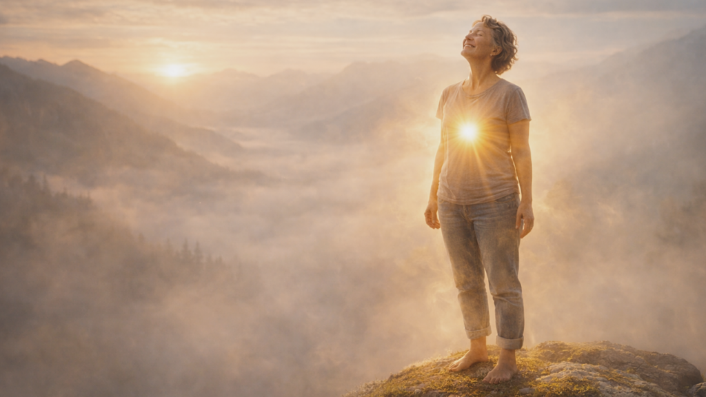 Diese Stimme spricht nicht zu einem Heiligen aus uralten Legenden; sie vibriert direkt in deinem Brustraum und erinnert dich daran, dass du nicht die kleine, ängstliche Person bist, für die du dich hältst. Du bist nicht der Beobachter der Welt, sondern der unendliche Lebensausdruck selbst, der sich gerade durch deine körperliche Form inszeniert.
