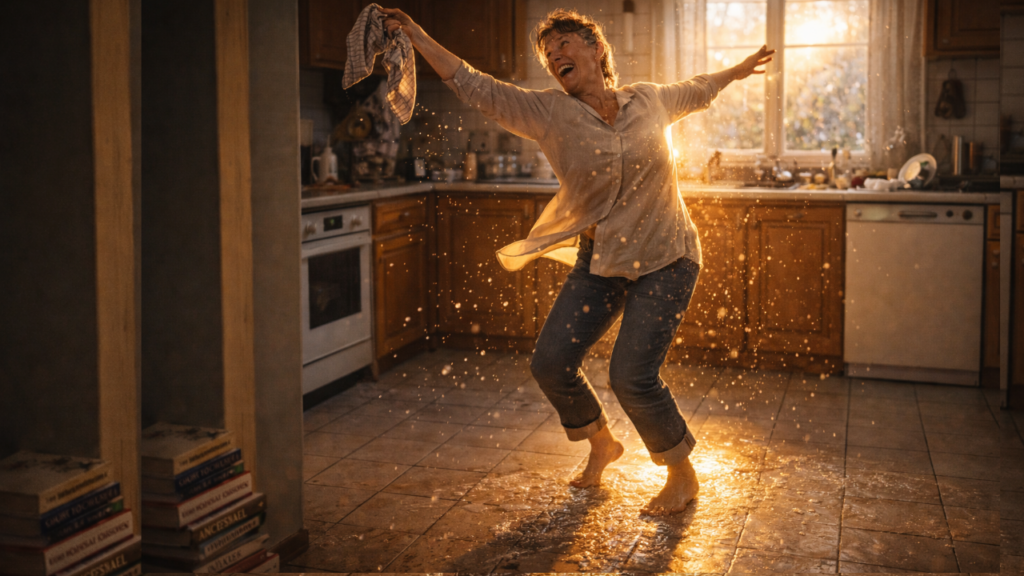 Diese unendliche Dimension braucht keine Kathedrale; sie trägt Gummistiefel oder geht barfuß. Deine tägliche Wäsche, dein Küchendienst und dein Hausputz sind kein lästiges Vorprogramm zum „wahren“ Leben – sie sind bebende Heiligkeit in Aktion. Das Leben ist jetzt voll präsent, mit seiner ganzen Hochachtung, mitten in deinen schlichten Verrichtungen. Wenn du aufhörst, dich vor deiner eigenen Größe zu schützen, erkennst du das heilige Erschrecken: Du bist das Licht der Welt, das gerade den Abwasch macht.