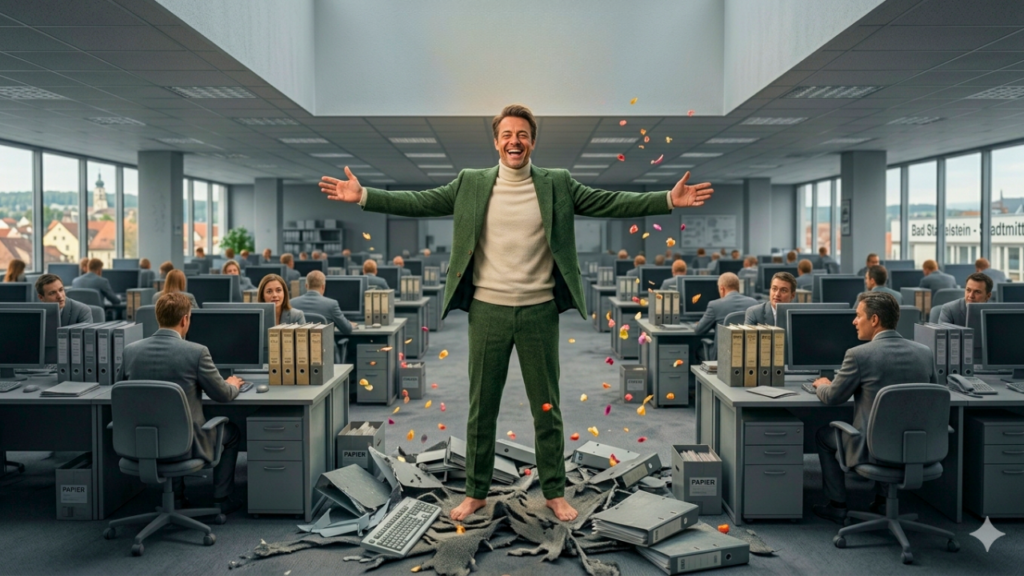 Das Ergebnis? Ein heruntergedimmtes Dasein, eine uniformierte Existenz, in der wir wie gut geölte Fleischklöpse durch den Alltag rollen. Wir nennen das „Anstand“ oder „Vernunft“, aber in Wahrheit ist es ein langsamer Erstickungstod.